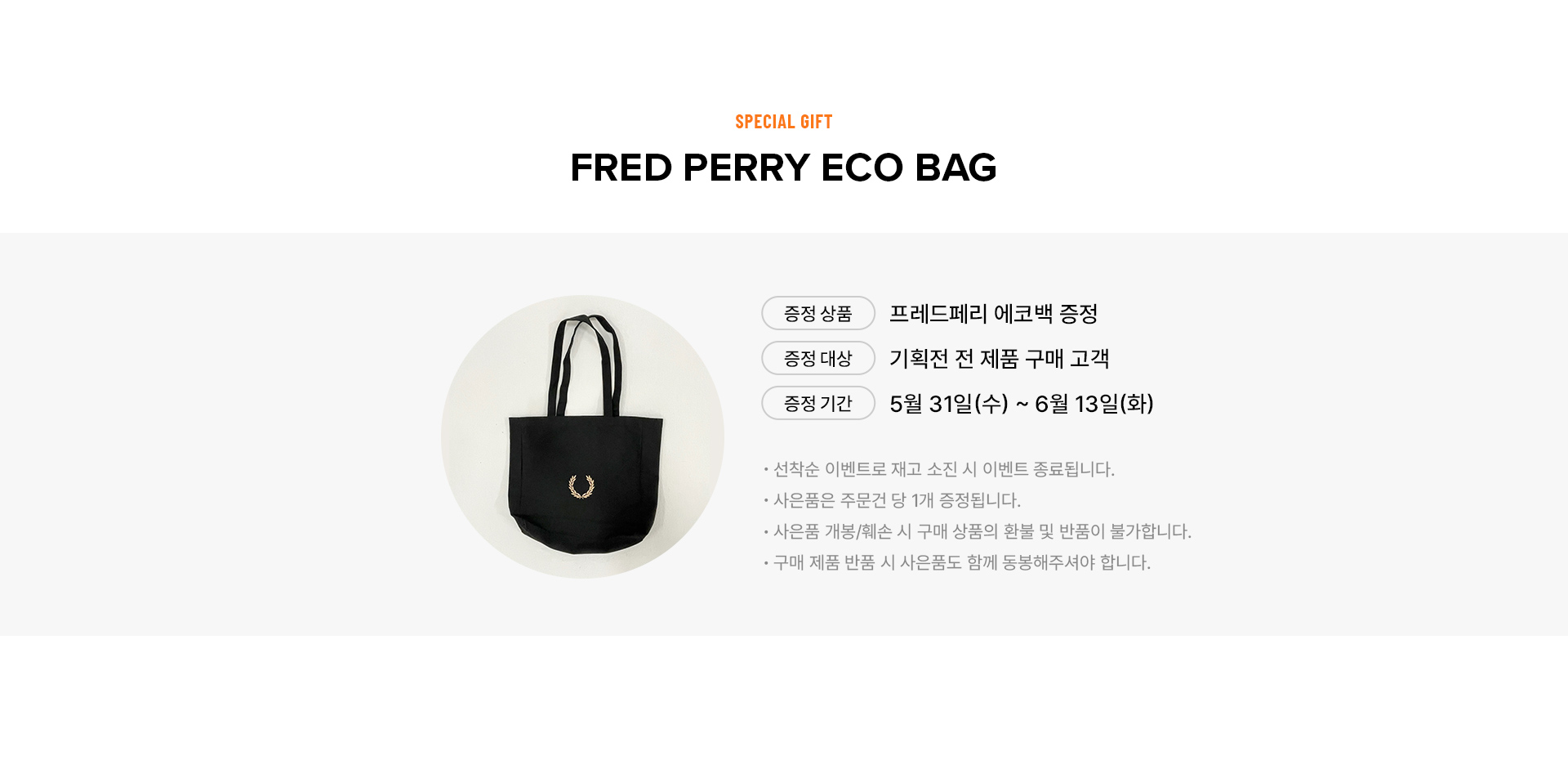 스페셜 이슈 | 프레드페리 10% 쿠폰 & 에코백 증정 이벤트