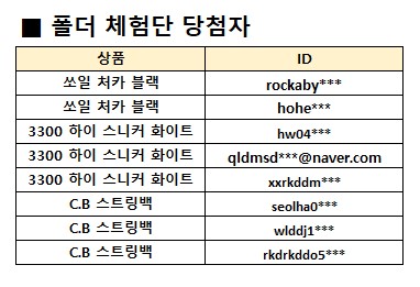 [5차] 폴더 체험단 당첨자 발표