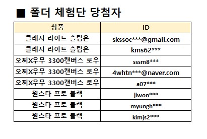 [6차] 폴더 체험단 당첨자 발표