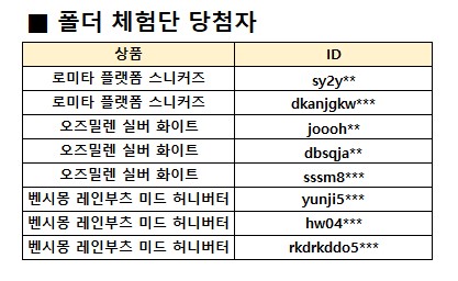 [12차] 폴더 체험단 당첨자 발표