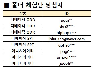 [17차] 폴더 체험단 당첨자 발표