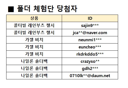 [28차] 폴더 체험단 당첨자 발표